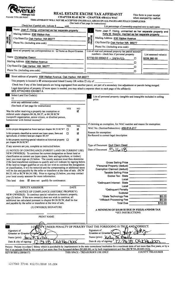 | Mailing Address: | 2124 NORCLIFF WAY OAK HARBOR, WA 98277 | % Ownership: | 100.0000000000% |