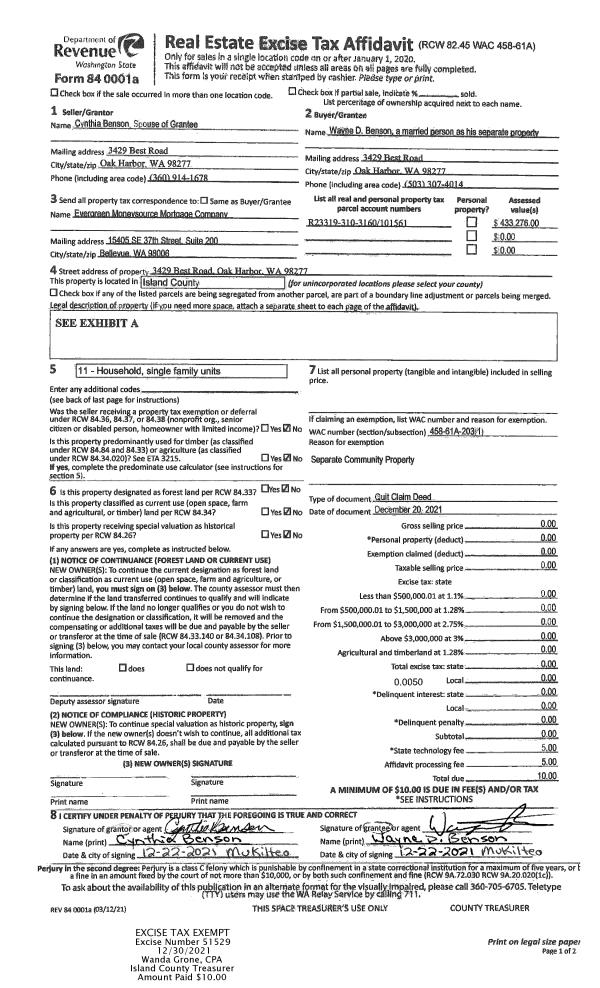 | Mailing Address: | 4321 NORTHGATE DR OAK HARBOR, WA 98277 | % Ownership: | 100.0000000000% |