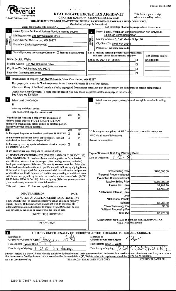 | Mailing Address: | 4387 NORTHGATE DR OAK HARBOR, WA 98277 | % Ownership: | 100.0000000000% |