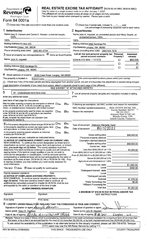 | Mailing Address: | 39755 SR 20 OAK HARBOR, WA 98277 | % Ownership: | 100.0000000000% |