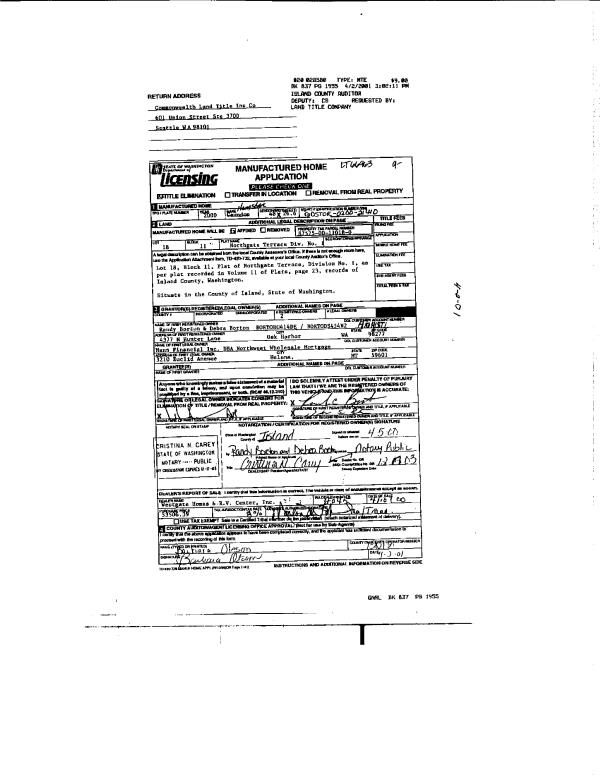 | 6 | 11/21/2001 | REC | Real Estate Contract | DICKINSON, MARJATTA T | DENNEY, TROY D | | | $25,000.00 | 14570 | 4004614 |