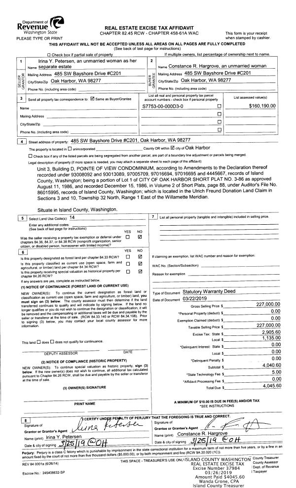 | Mailing Address: | 4394 NORTHGATE DR OAK HARBOR, WA 98277 | % Ownership: | 100.0000000000% |