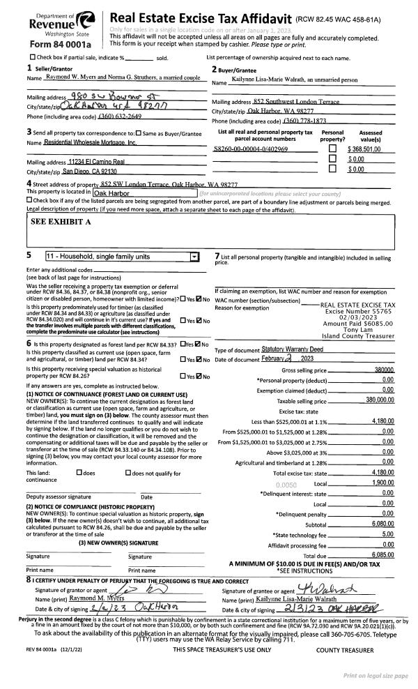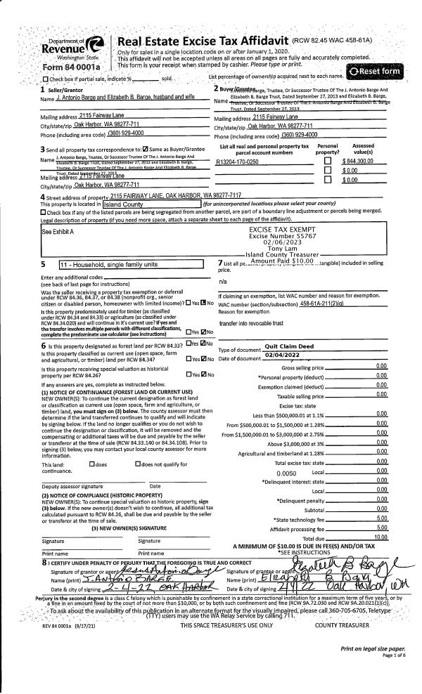 | Mailing Address: | 4011 DEGRAFF RD OAK HARBOR, WA 98277 | % Ownership: | 100.0000000000% |