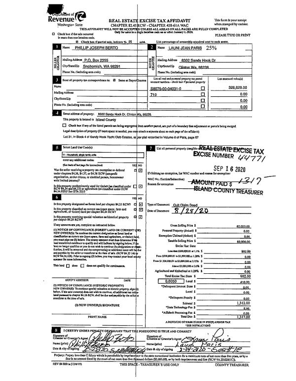 | Mailing Address: | HAYLEY S SANTIAGO 545 SALAL ST OAK HARBOR, WA 98277 | % Ownership: | 100.0000000000% |
