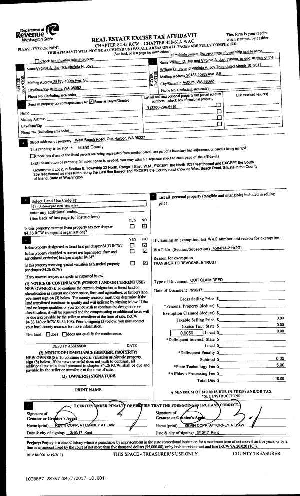 | Mailing Address: | 5255 SALAL ST OAK HARBOR, WA 98277 | % Ownership: | 100.0000000000% |