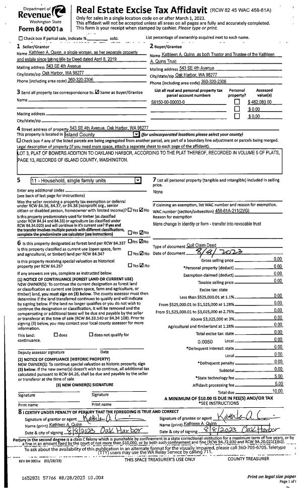 | Mailing Address: | 4204 TYLER WAY ANACORTES, WA 98221 | % Ownership: | 100.0000000000% |