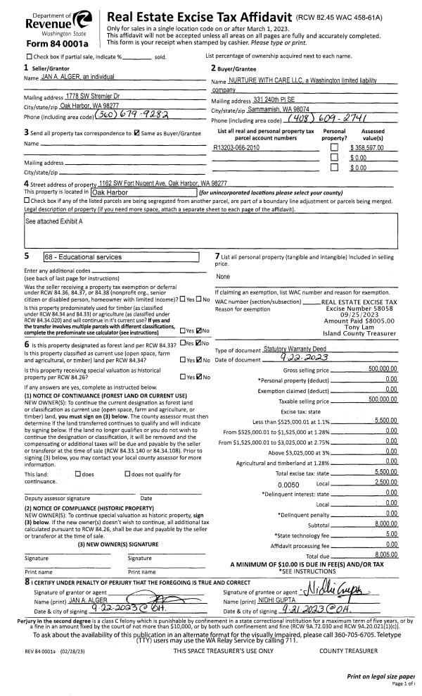 | Mailing Address: | 549 WEST OCEAN VIEW DR OAK HARBOR, WA 98277 | % Ownership: | 100.0000000000% |