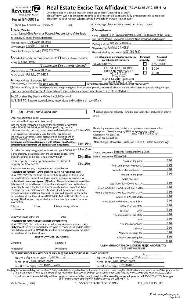 | 7 | 02/01/1989 | WD | Warranty Deed | RECREATION, LAND M | ISLAND, PACIFIC C | | | $7,950.00 | 90614 | 89002127 |