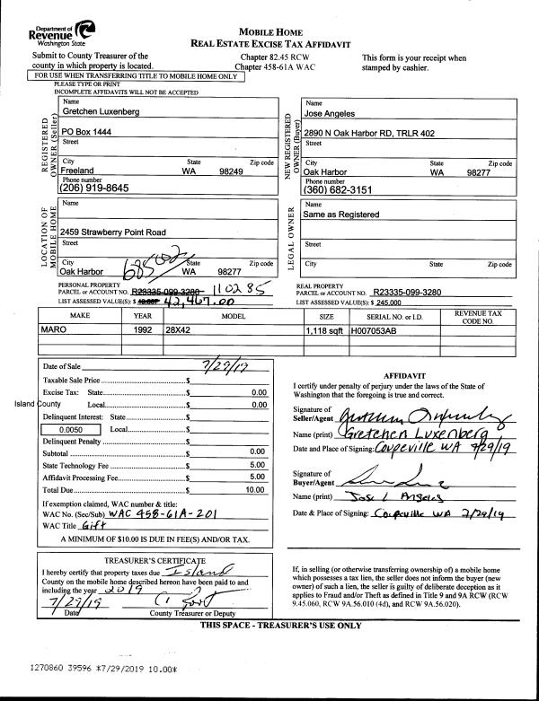 | Mailing Address: | RICHELLE DIONNE SHERI FARROW 4365 HAMILTON DR OAK HARBOR, WA 98277 | % Ownership: | 100.0000000000% |