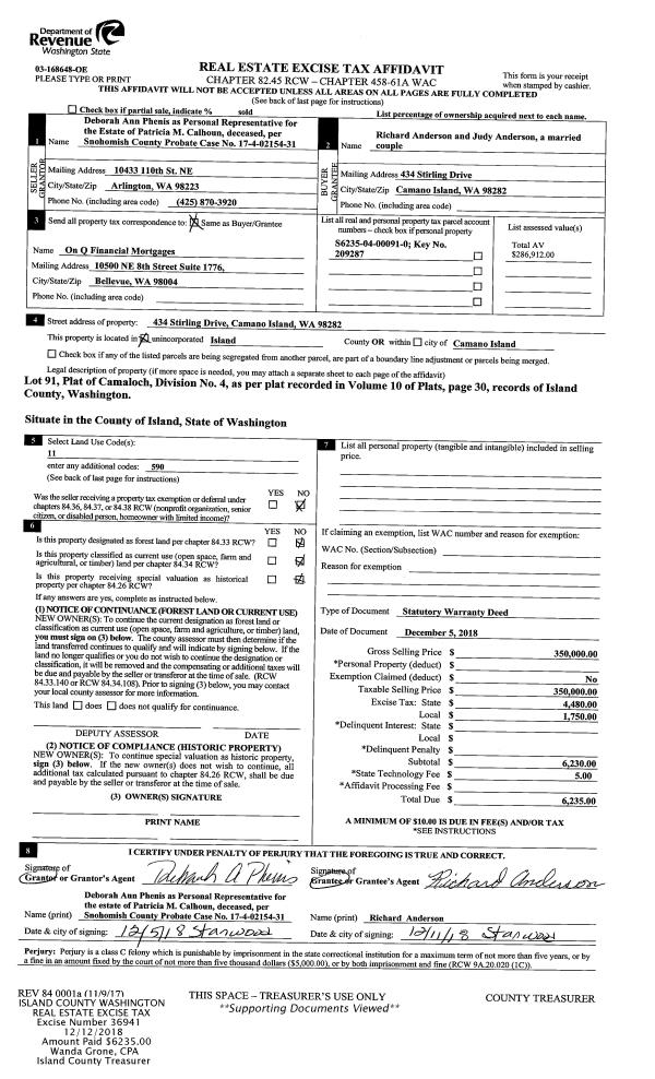 | Mailing Address: | DEETTE KIMMET 4341 HAMILTON DR OAK HARBOR, WA 98277 | % Ownership: | 100.0000000000% |