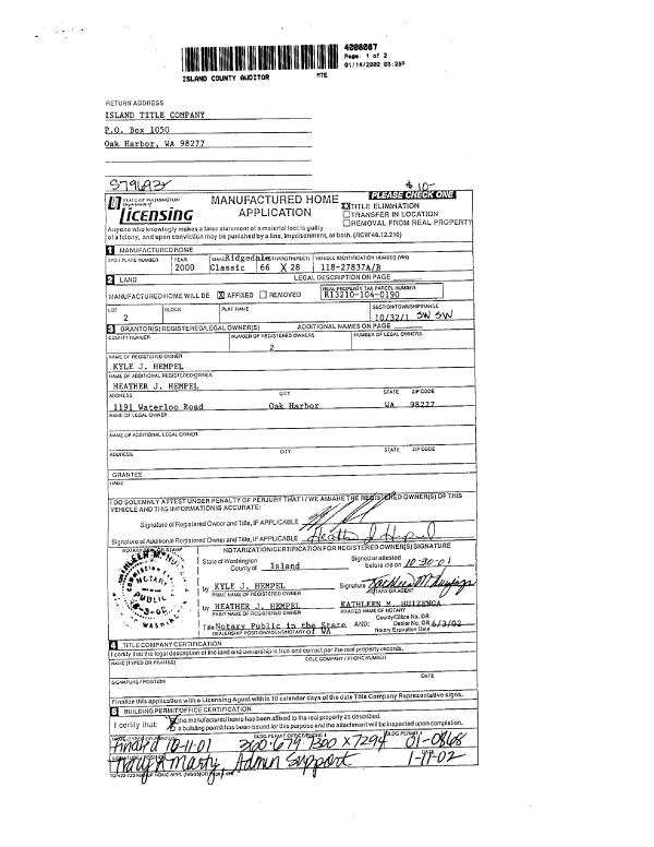 | 4 | 03/11/2008 | WD | Warranty Deed | WESTGATE MOBILE HOMES INC, | HABITAT FOR HUMANITY OF ISLAND | | | $65,000.00 | 80619 | 4224044 |