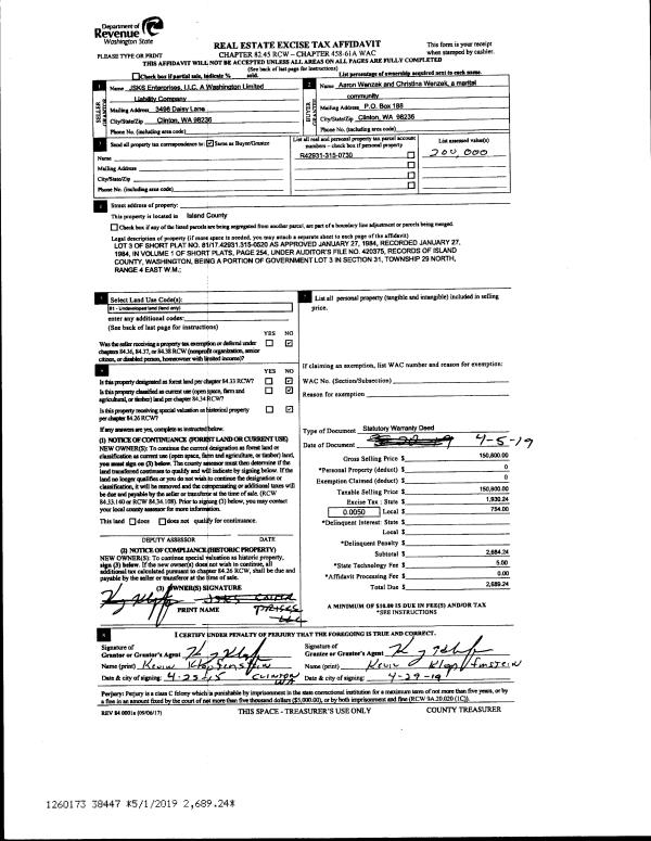 | Mailing Address: | 825 SE PASEK ST OAK HARBOR, WA 98277 | % Ownership: | 100.0000000000% |
