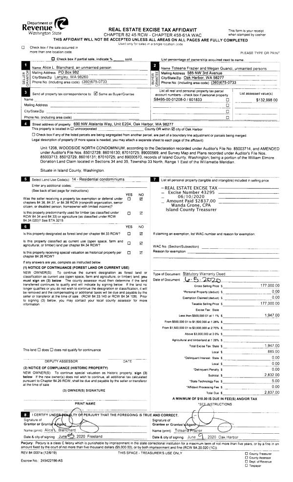 | Mailing Address: | BRANDY JO TANNER 1540 SE PIONEER WAY OAK HARBOR, WA 98277 | % Ownership: | 100.0000000000% |