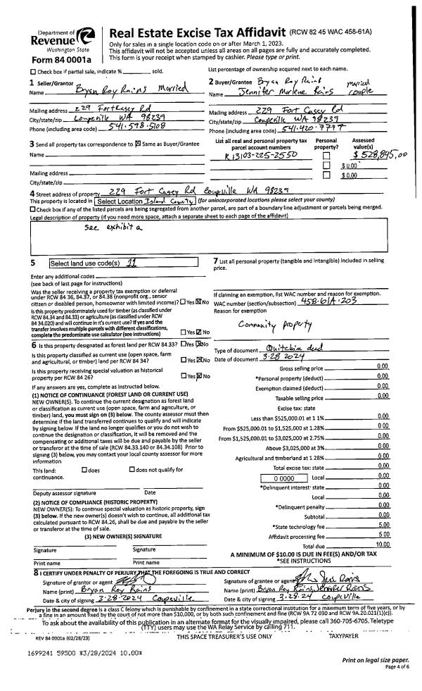| Mailing Address: | 33575 STATE ROUTE 20 OAK HARBOR, WA 98277 | % Ownership: | 100.0000000000% |