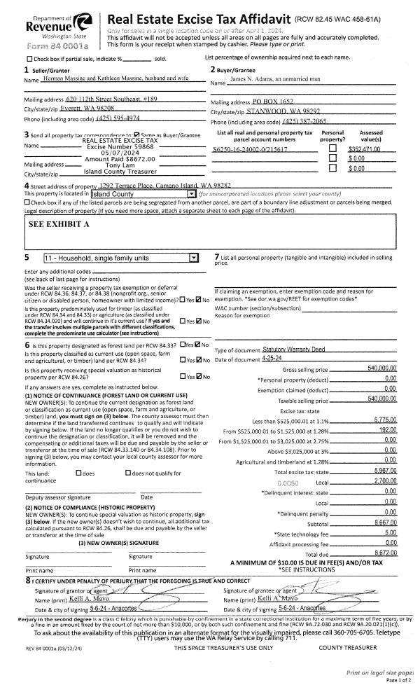| Mailing Address: | 1582 SCENIC HEIGHTS RD OAK HARBOR, WA 98277-8415 | % Ownership: | 100.0000000000% |