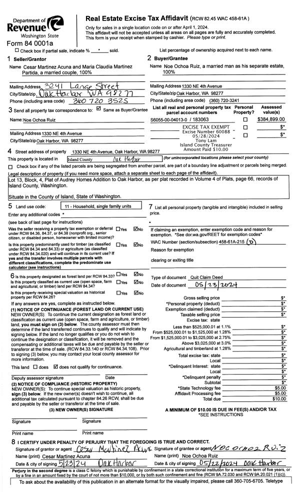 | 1 | 01/10/2023 | WD | Warranty Deed | CONCORDE PROPERTIES, INC | CITY OF OAK HARBOR | | | $400,000.00 | 55601 | 4555627 |