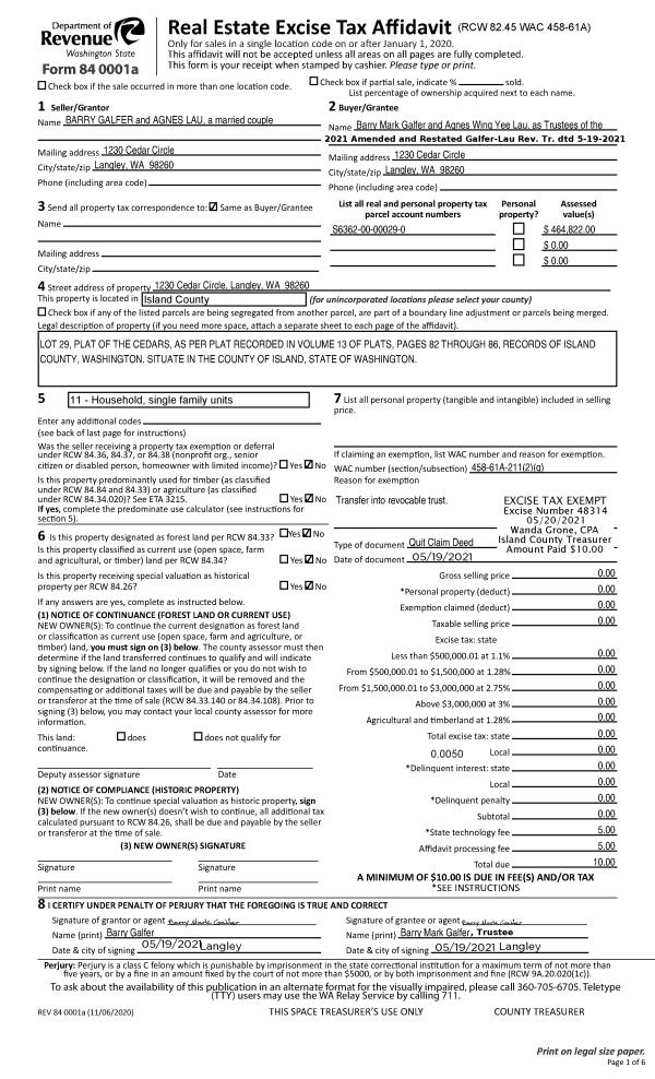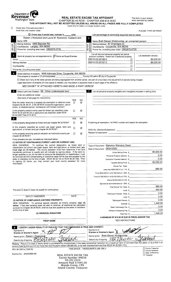 | Mailing Address: | 51 NW COLUMBIA DR UNIT 203 OAK HARBOR, WA 98277 | % Ownership: | 100.0000000000% |