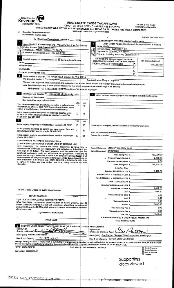 | Mailing Address: | CLAUDIA M CORTES 486 W HENNI RD OAK HARBOR, WA 98277 | % Ownership: | 100.0000000000% |