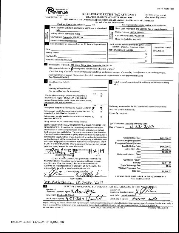 | Mailing Address: | LACEY REISENAUER 564 SE 4TH AVE OAK HARBOR, WA 98277 | % Ownership: | 100.0000000000% |