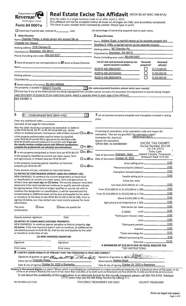| Mailing Address: | 6168 BARNACLE LN CLINTON, WA 98236-9136 | % Ownership: | 100.0000000000% |