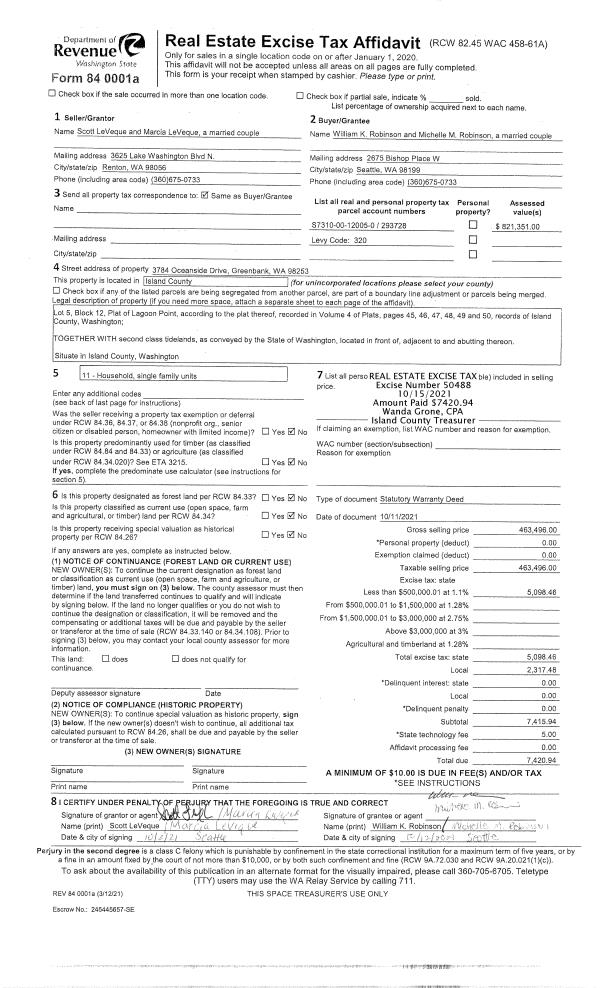 | Mailing Address: | 6183 BLUE HAVEN WAY CLINTON, WA 98236 | % Ownership: | 100.0000000000% |