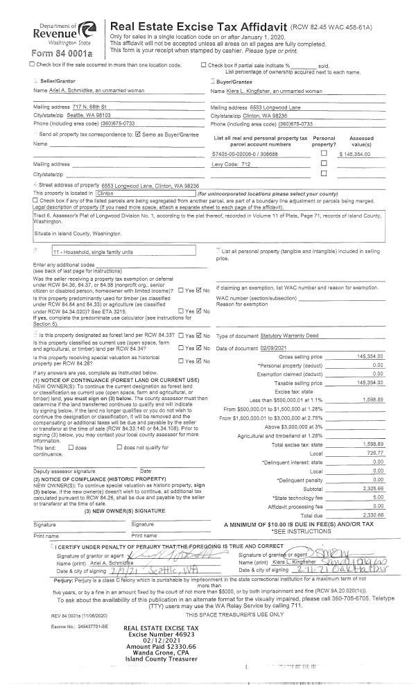 | Mailing Address: | 6159 BLUE HAVEN WAY CLINTON, WA 98236-9111 | % Ownership: | 100.0000000000% |