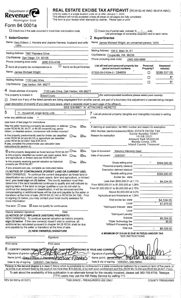 | Mailing Address: | 749 COMMODORE LN CAMANO ISLAND, WA 98282 | % Ownership: | 100.0000000000% |
