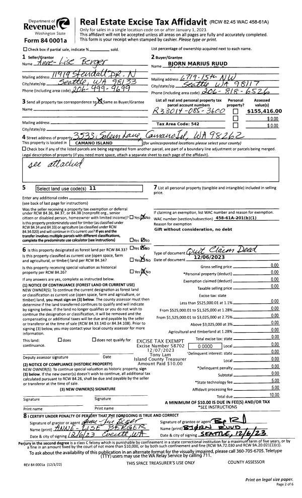 | Mailing Address: | PAMELA NEW 758 COMMODORE LN CAMANO ISLAND, WA 98282 | % Ownership: | 100.0000000000% |