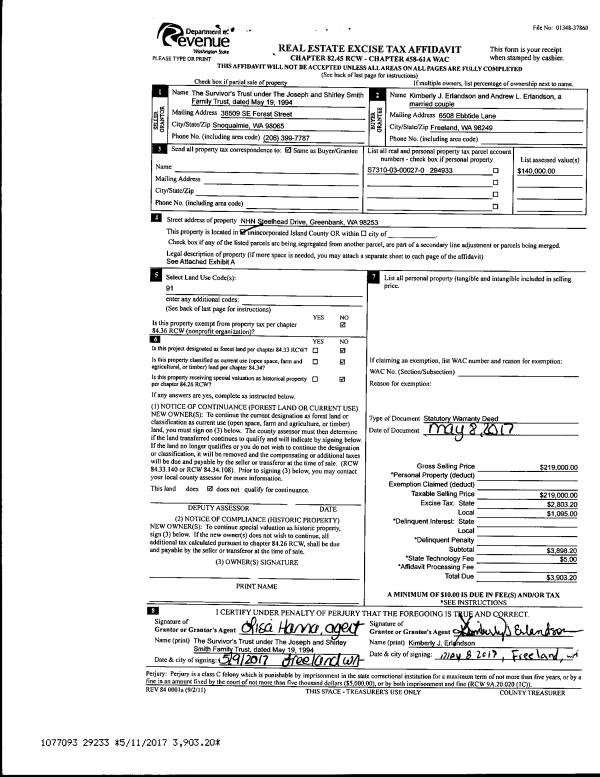 | Mailing Address: | 746 MALABAR DR CAMANO ISLAND, WA 98282 | % Ownership: | 100.0000000000% |