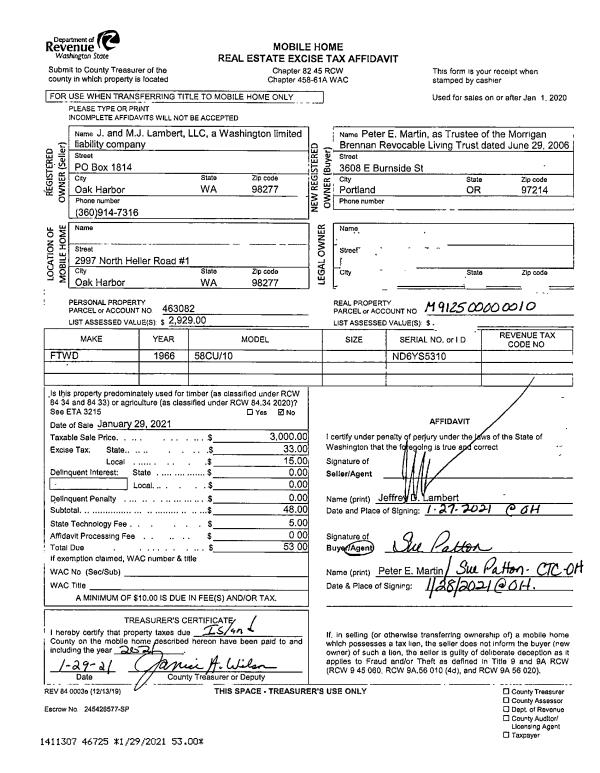 | Mailing Address: | JENNY LEE HOGAN 4276 TERRACE DR OAK HARBOR, WA 98277-9521 | % Ownership: | 100.0000000000% |