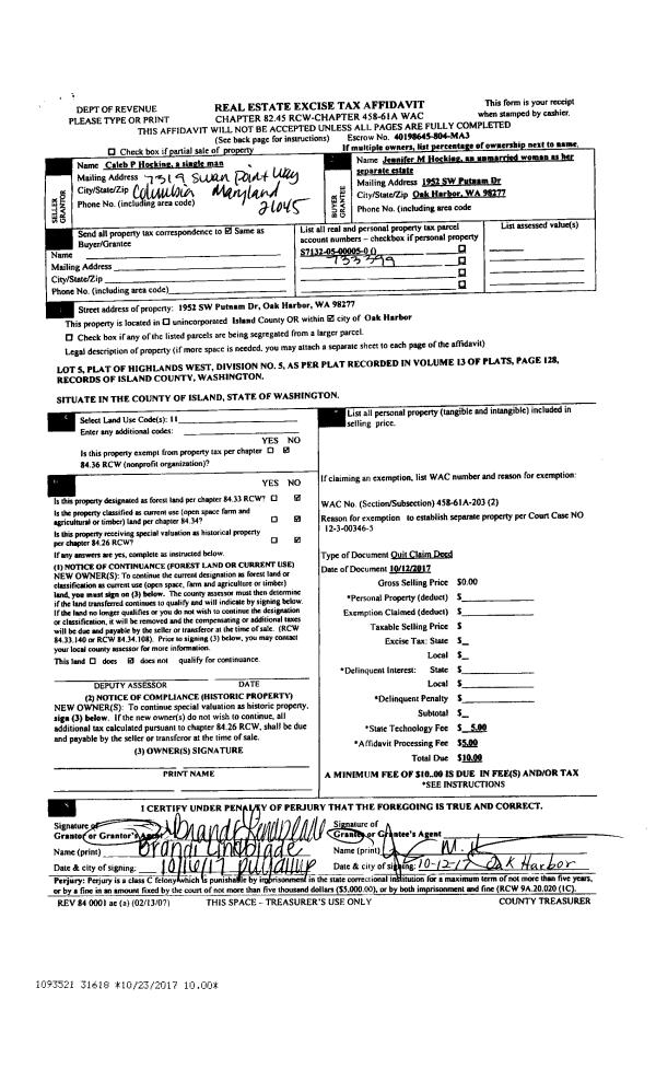 | Mailing Address: | CAROL KAMMERZELL 884 SARATOGA WAY CAMANO ISLAND, WA 98282 | % Ownership: | 100.0000000000% |