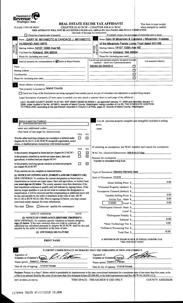 | 2 | 05/22/2018 | SPWARDEED | Special Warranty Deed | BURROUGHS, HORACE K | BURROUGHS TTEE, JOHN C | | | $0.00 | 34604 | 4446516 |