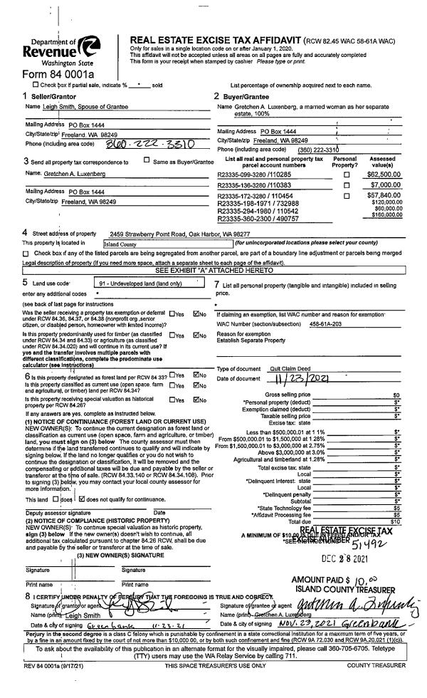 | Mailing Address: | 6504 SPENCER LN CLINTON, WA 98236 | % Ownership: | 100.0000000000% |
