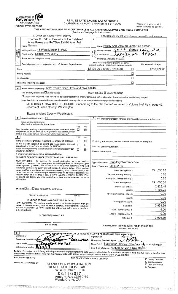 | 1 | 08/02/2017 | WD | Warranty Deed | HOWE, ROGER A | WALKER TRUSTEE, DAVID B | | | $65,000.00 | 30531 | 4427733 |