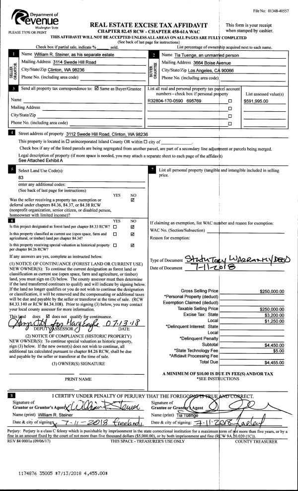 | Mailing Address: | JENNELL RENEE GRAVAGE 4730 NORTH PARK ACRES DR OAK HARBOR, WA 98277 | % Ownership: | 100.0000000000% |