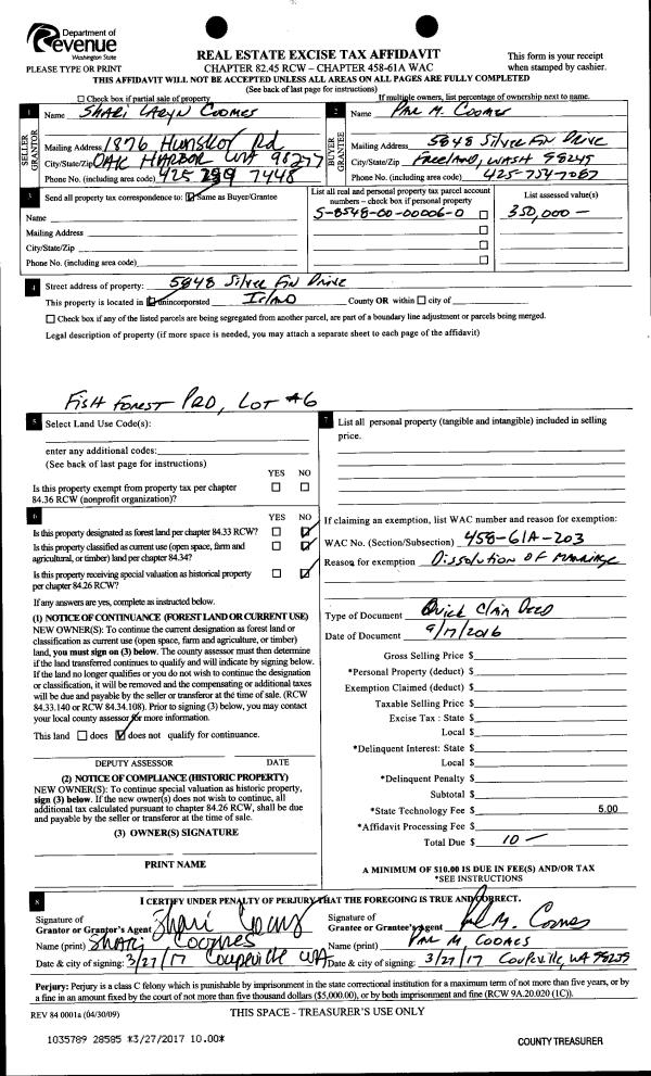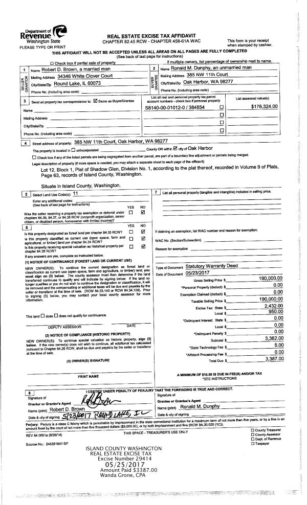 | Mailing Address: | ELSA CORFMAN 1343 N E 10TH AVE OAK HARBOR, WA 98277 | % Ownership: | 100.0000000000% |