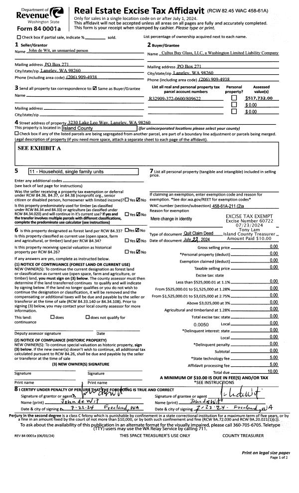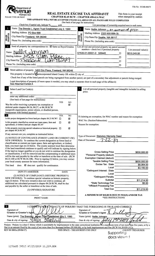 | Mailing Address: | 1021 NE O'LEARY ST OAK HARBOR, WA 98277 | % Ownership: | 100.0000000000% |