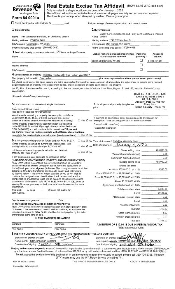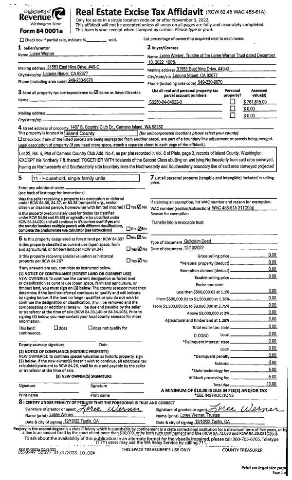 | Mailing Address: | 2257 PARKER RD CAMANO ISLAND, WA 98282 | % Ownership: | 100.0000000000% |