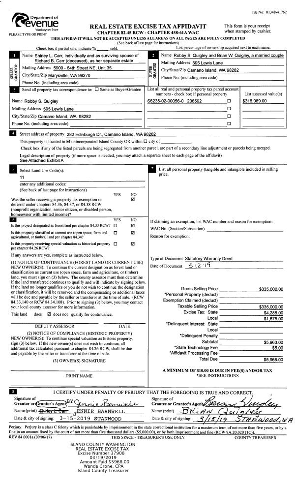 | 2 | 01/25/2019 | WD | Warranty Deed | TALBOT, CECIL J / HELEN C | HART, STEVEN | | | $280,000.00 | 37399 | 4458377 |