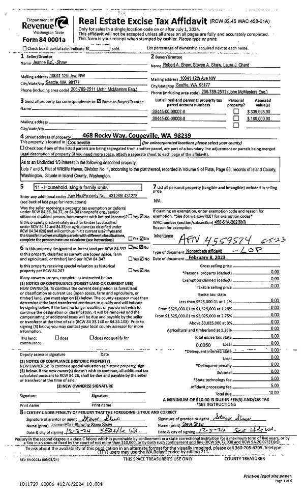 | Mailing Address: | 2365 HASTIE LAKE RD OAK HARBOR, WA 98277-8533 | % Ownership: | 100.0000000000% |