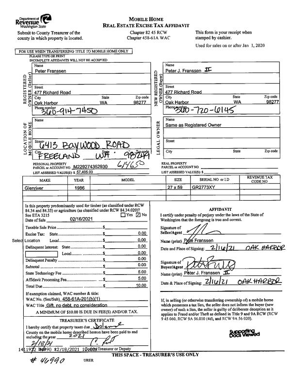 | Mailing Address: | MARIELLE RYPSTRA 2404 MARIE WAY OAK HARBOR, WA 98277 | % Ownership: | 100.0000000000% |
