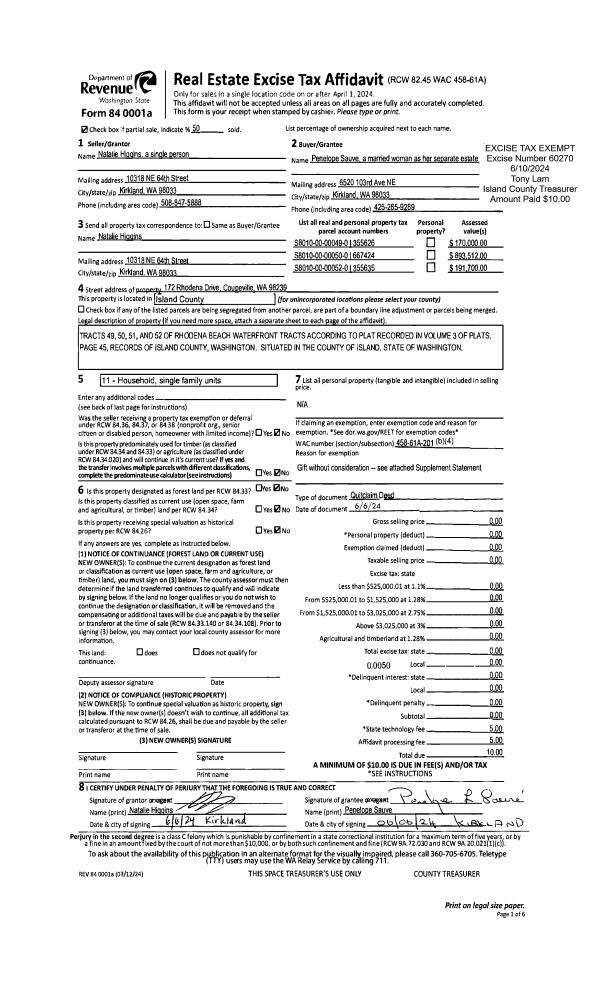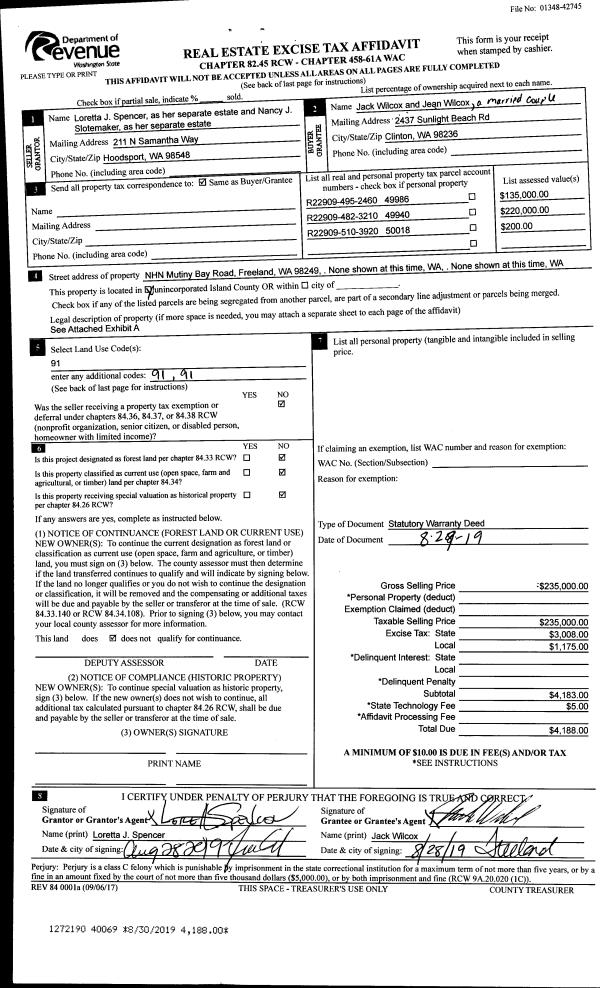| Mailing Address: | MARJORIE ELIZABETH FORBES 2370 MARIE WAY OAK HARBOR, WA 98277 | % Ownership: | 100.0000000000% |