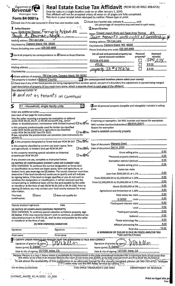 | Mailing Address: | 38025 SR 20 OAK HARBOR, WA 98277 | % Ownership: | 100.0000000000% |