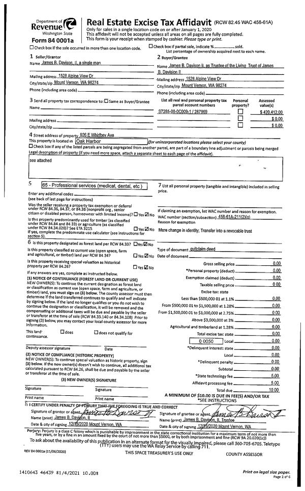 | Mailing Address: | ALYSSA N FAKKEMA 38025 STATE ROUTE 20 OAK HARBOR, WA 98277 | % Ownership: | 100.0000000000% |