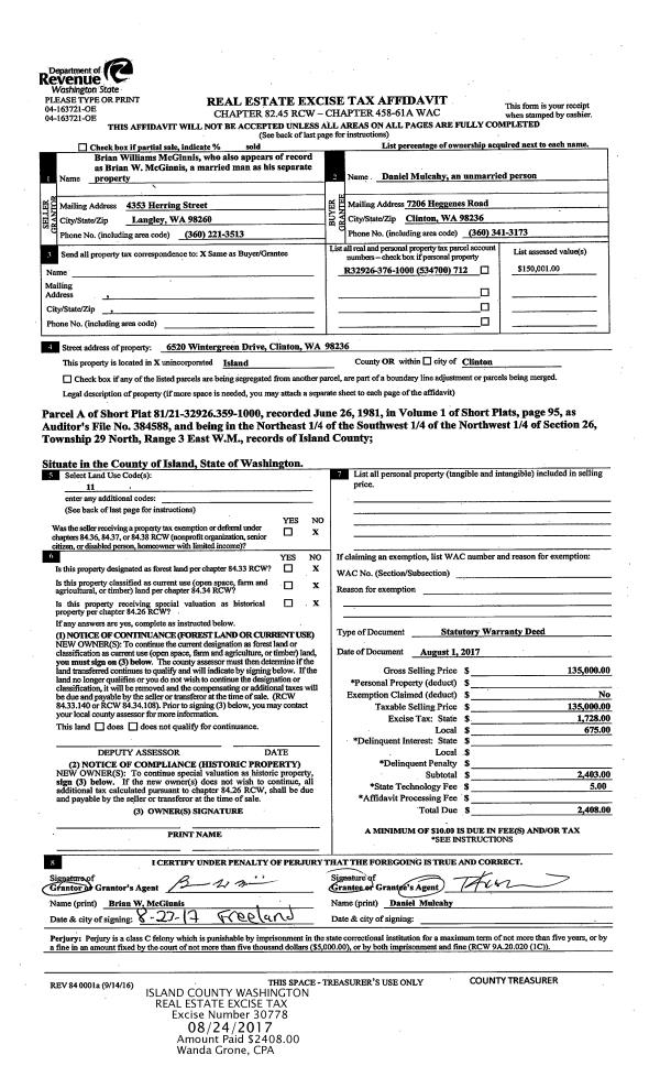 | Mailing Address: | 1354 ORCHARD LOOP OAK HARBOR, WA 98277 | % Ownership: | 100.0000000000% |
