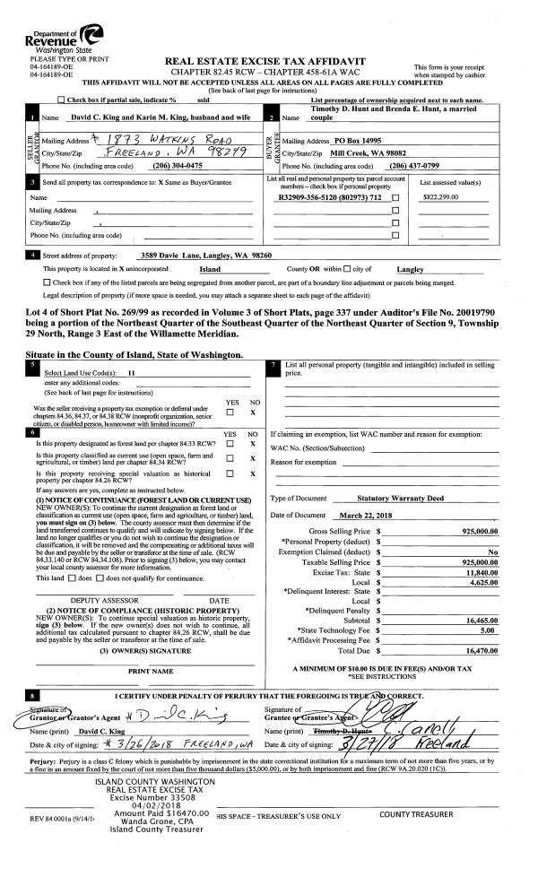 | Mailing Address: | 1353 ORCHARD LOOP OAK HARBOR, WA 98277 | % Ownership: | 100.0000000000% |
