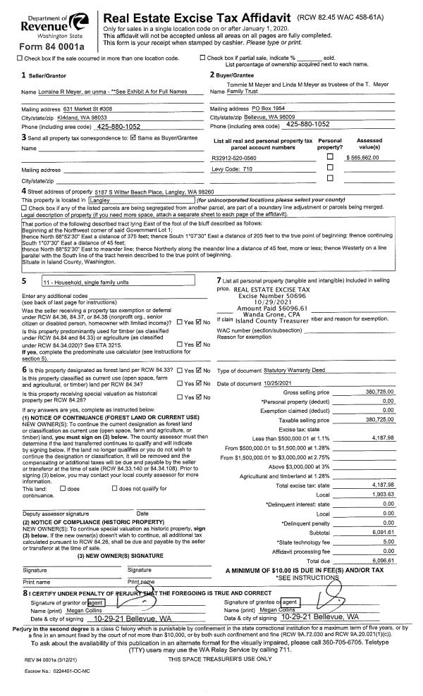 | Mailing Address: | ROSEMARIE C GAGNON & RANDY R GAGNON 2480 CRESTVEW PL OAK HARBOR, WA 98277 | % Ownership: | 100.0000000000% |