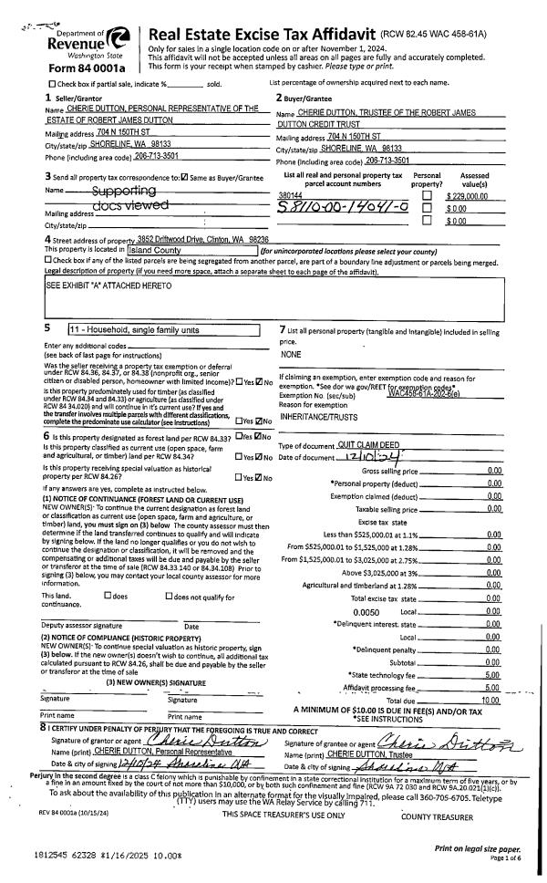 | 2 | 07/25/2024 | QCD | Quit Claim Deed | DUBRIL ENTERPRISES, LLC | ARCHER TTEE, DEREK WAYNE | | | $0.00 | 60746 | 4575075 |