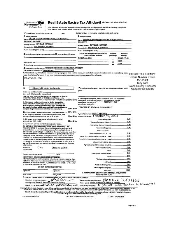 | Mailing Address: | 1400 BONNIE VIEW ACRES RD OAK HARBOR, WA 98277 | % Ownership: | 100.0000000000% |
