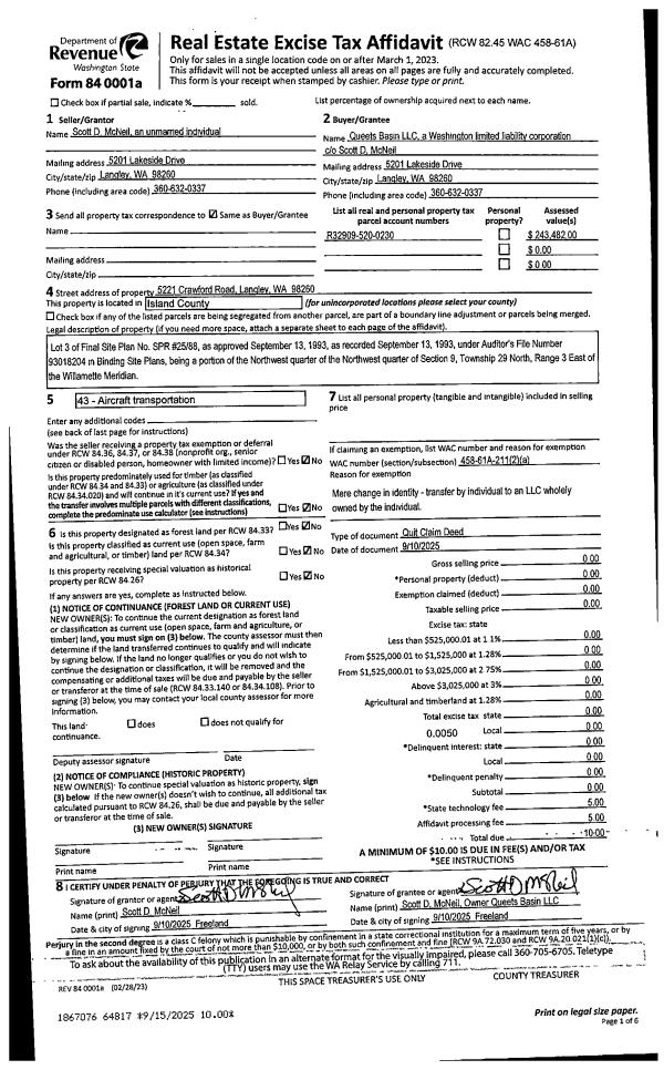 | Mailing Address: | CASSIDY CHRISTINE SHAMSELDIN 2578 RIDGEVIEW DR OAK HARBOR, WA 98277 | % Ownership: | 100.0000000000% |